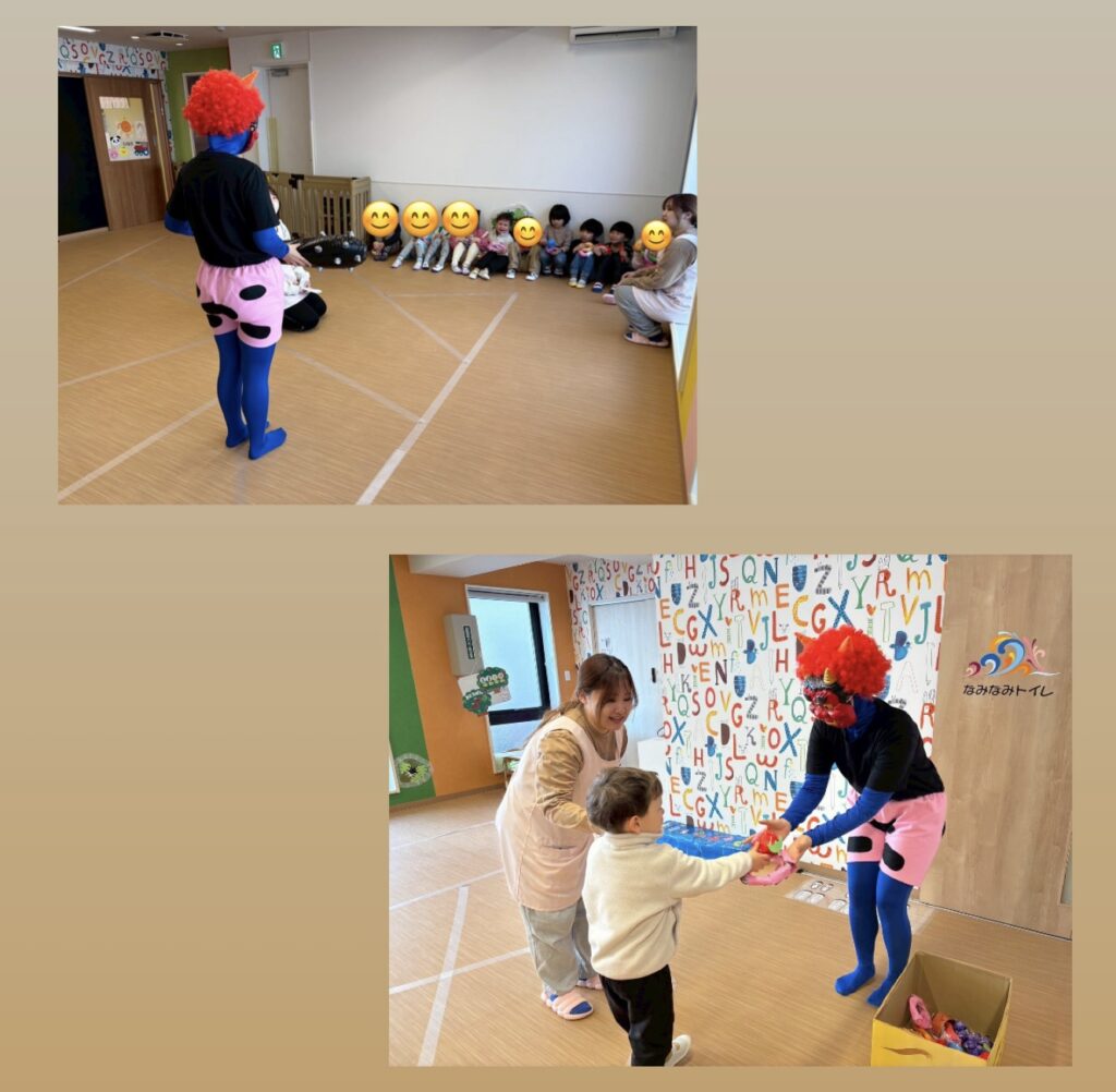 幼児は「鬼来るんでしょ〜」「どこにいるのいつ来るの」と興味津々👹